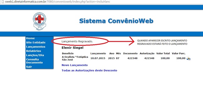 Depois de ter clicado em ENVIAR irá aparecer a mensagem “LANÇAMENTO REGRAVADO” no qual quer dizer que autorização foi validada com sucesso. Vide tela abaixo.