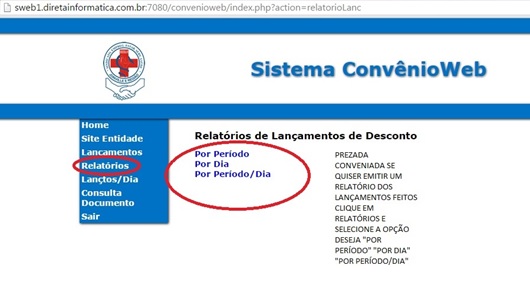 Caso queria emitir um relatório das autorizações validadas deverá clicar na opção RELATÓRIOS, no qual poderá escolher o tipo de relatório, “SE É POR PERÍODO”, “SE É POR DIA” ou “POR PERÍODO/DIA”.