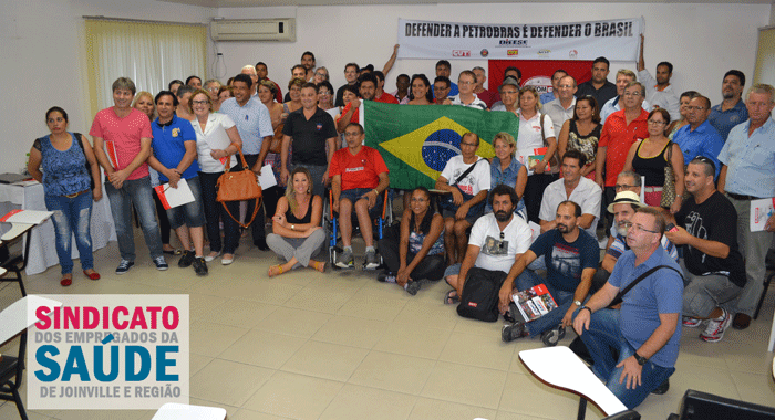Cerca de 100 sindicalistas das diferentes centrais sindicais participaram na tarde desta quinta-feira, dia 5, no Sindicato dos Trabalhadores da Construção Civil e Mobiliário de Jaraguá do Sul, de um debate com o economista do Dieese-SC, José Alvaro Cardoso, sobre a importância da Petrobras na economia brasileira. “A Petrobras se confunde com a luta do povo brasileiro em busca da soberania”, disse Cardoso. Parte da diretoria do Sindicato dos Empregados em Estabelecimentos de Serviços de Saúde de Joinville e Região participaram da discussão.