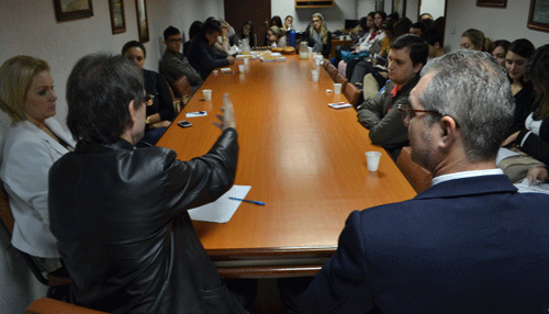Na manhã desta sexta-feira, dia 15, cerca de 40 alunos de Direito estiveram no Sindicato da Saúde para conhecer parte da história, do funcionamento e das lutas dos trabalhadores. O presidente da entidade, Lorival Piseta, fez uma apresentação elencando o papel do sindicato. “Defendemos os interesses dos trabalhadores através de instrumentos coletivos e individuais”, explica.