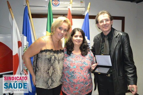 O Sindicato da Saúde realizou homenagem aos profissionais da enfermagem em Joinville na sexta-feira, dia 15, na sede da entidade. O presidente do sindicato, Lorival Piseta, explica que a direção da entidade fez a indicação de três empregados para receber uma lembrança. “Todos os profissionais merecem o reconhecimento, mas estes vão representar toda a categoria”, disse. Os indicados foram Elisabete Aparecida Rover (Dona Helena), Neiva Pazinato (Unimed Joinville) e Carmelita Ferreira de Alburquerque (Hospital Infantil).