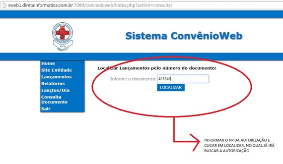 Depois de clicado na opção “CONSULTA DOCUMENTO” deverá informar o nº da autorização que desejas validar e clicar em LOCALIZAR.